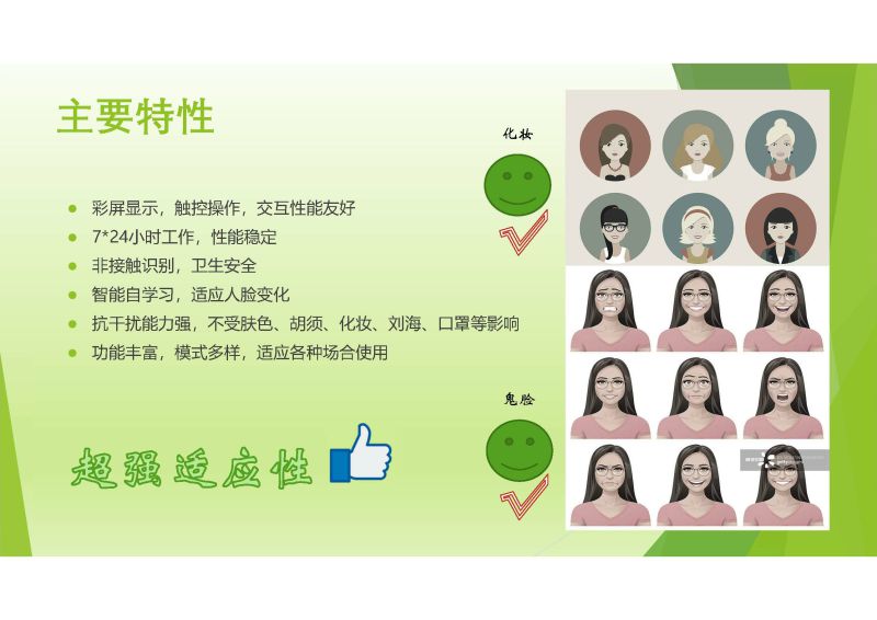 u该智能柜采用业界前列的动态人脸识别算法,识别速度快、准、稳,不论室内室外,无论白天黑夜,都能正常工作,适应性非常强;
